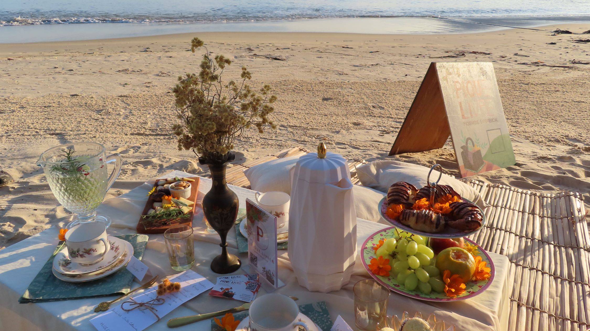 Desfrute de uma experiência de piquenique verdadeiramente única, durante o pôr do sol, no deslumbrante litoral de Santa Catarina, criada especialmente para surpreender e compartilhar com seus entes queridos. A Pique Livre cuida de cada detalhe com amor e dedicação, oferecendo um piquenique personalizado, à beira mar, repleto de quitutes artesanais e uma decoração encantadora que despertará memórias e inspirará momentos especiais.